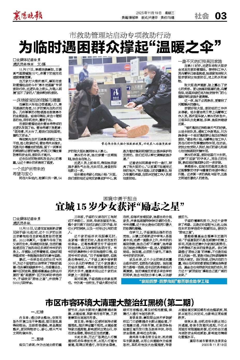 高铁南路:襄阳职业技术学院新校区门口游散摊点长期占道经营,不仅堵塞交通、污染环境,还易因争抢经营区域引发口角及肢体冲突,存在安全隐患,影响社会和谐。