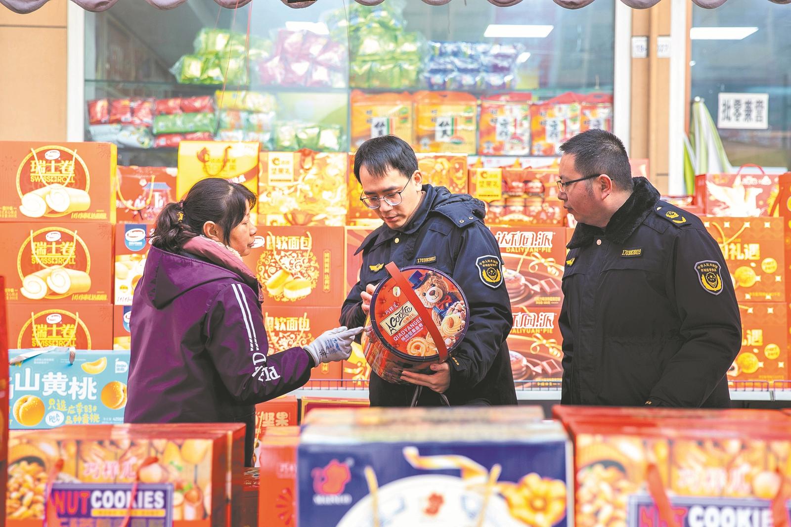 1月28日,樊城区市场监管局牛首市场监管所工作人员深入辖区经营场所,开展年货市场专项检查,重点对预包装食品礼盒、时令水果进行细致查验,全力保障广大消费者的合法权益与节日消费安全。