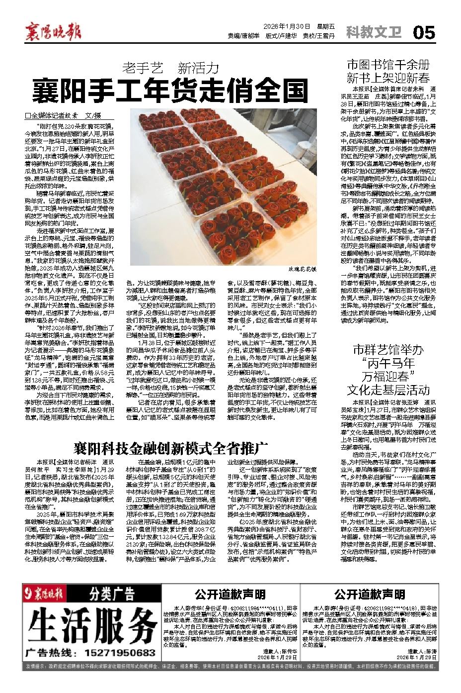 本报讯【全媒体记者杨洋 通讯员何航平 实习生李丽纯】1月29日,记者获悉,湖北省发布《2025年度湖北省科技金融优秀典型案例》,襄阳市科技局获得“科技金融优秀示范机构”称号,其科技金融创新模式在全省推广。