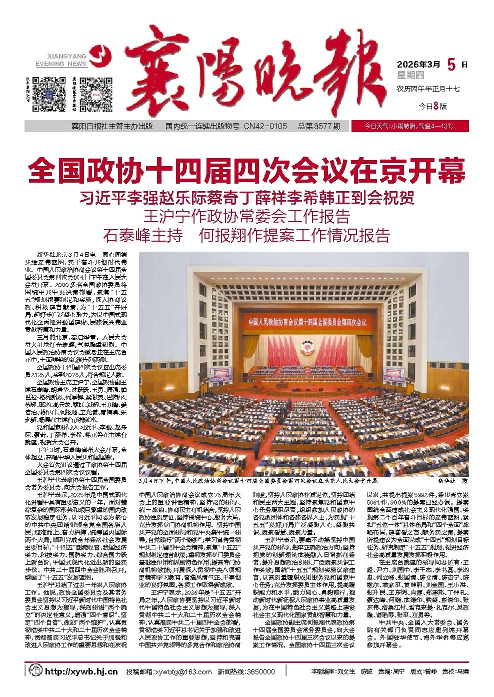 新华社北京3月4日电 同心同德共绘宏伟蓝图,实干奋斗共创时代伟业。中国人民政治协商会议第十四届全国委员会第四次会议4日下午在人民大会堂开幕。2000多名全国政协委员将围绕中共中央决策部署,聚焦“十五五”规划纲要制定和实施,深入协商议政、积极建言献策,为“十五五”开好局、起好步广泛凝心聚力,为以中国式现代化全面推进强国建设、民族复兴伟业贡献智慧和力量。