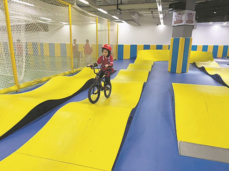 首先说说这里的泵道自行车。这个项目特别有意思,让人越玩越投入,不知不觉就沉浸其中。帅气的车架、宽大的轮胎、锃亮的链条,看上去就让人跃跃欲试。赛道上的坡道设计得十分有趣,骑行起来十分刺激。
