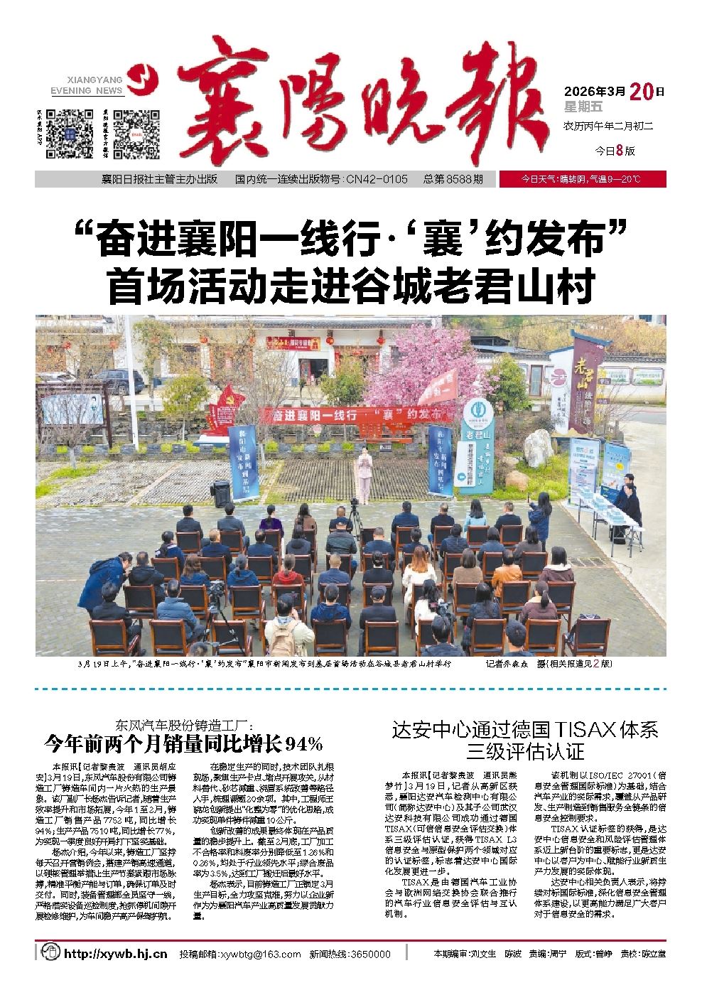 《襄阳晚报》 (2026年03月20日 第01版)