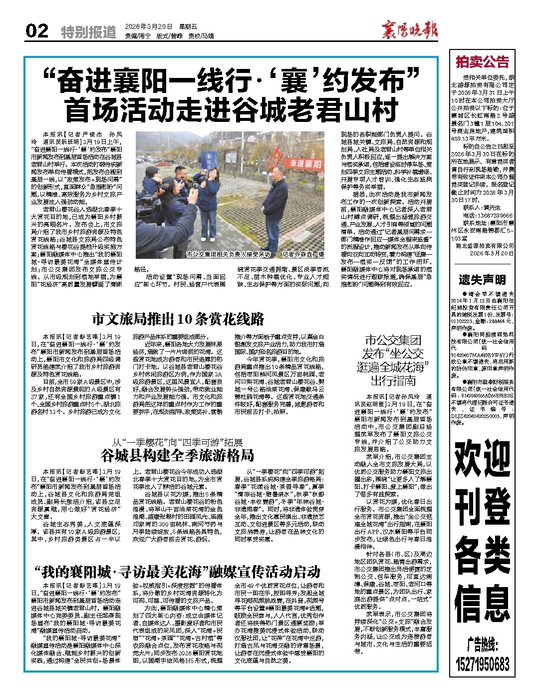 针对各县(市、区)及周边地区团队赏花、踏青出游需求,市公交集团推出灵活便捷的定制公交、包车服务,可直达南漳、保康、谷城、枣阳、老河口等地的重点景区,为团队出行、家庭出游提供“点对点、一站式”优质服务。