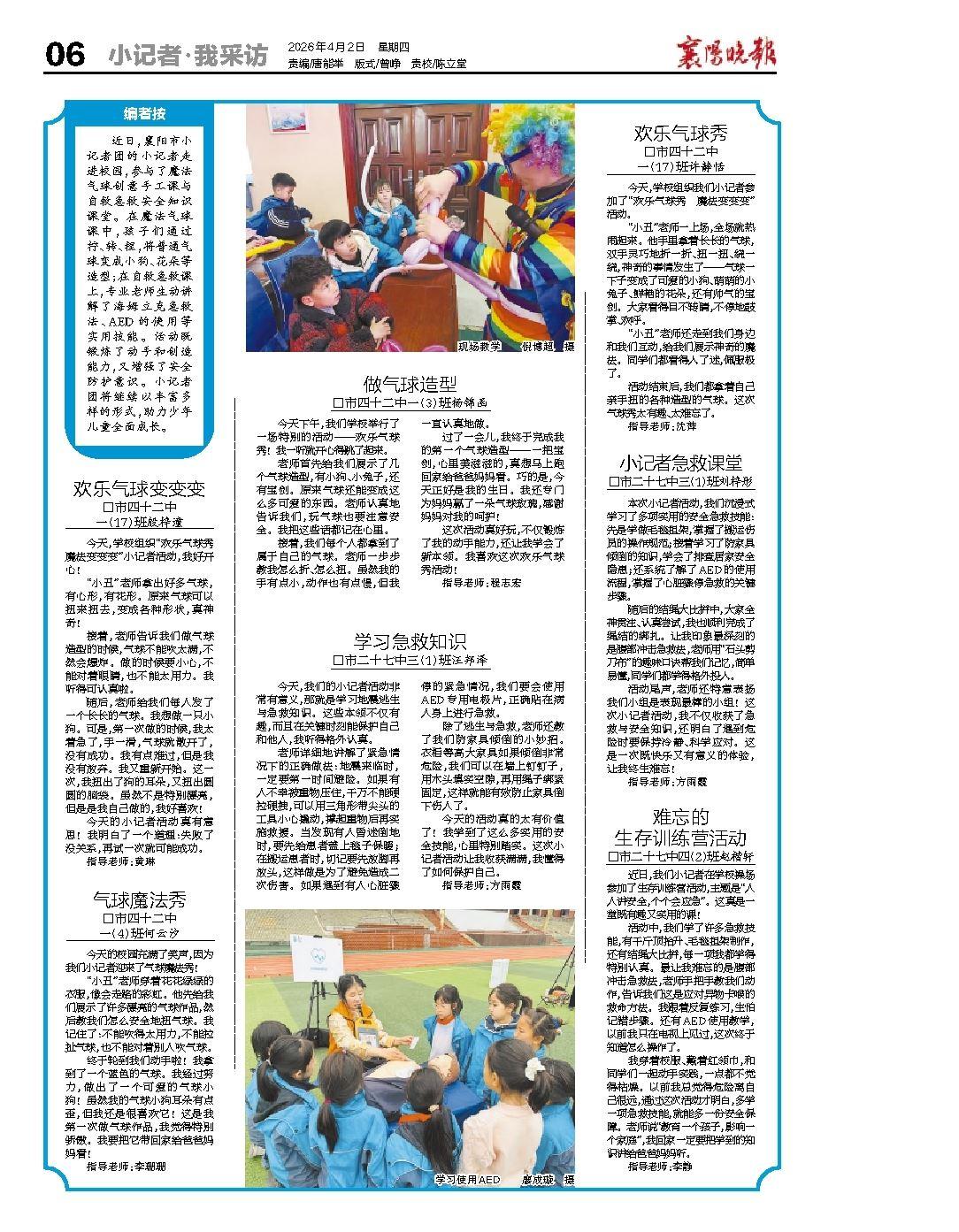 活动尾声,老师还特意表扬我们小组是表现最棒的小组!这次小记者活动,我不仅收获了急救与安全知识,还明白了遇到危险时要保持冷静、科学应对。这是一次既快乐又有意义的体验,让我终生难忘!