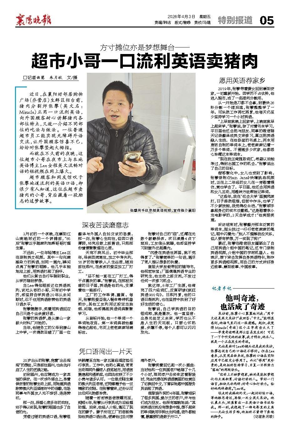 超市顾客和网友惊叹于张攀地道流利的英语口语,却很少有人知道,这位在超市卖猪肉的小哥,背后藏着一段励志的追梦故事。
