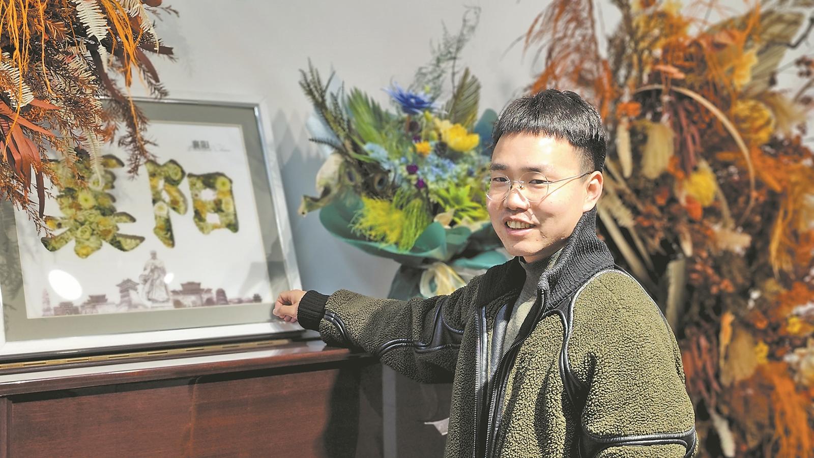 尚亚帆和“襄阳”主题永生花作品合影