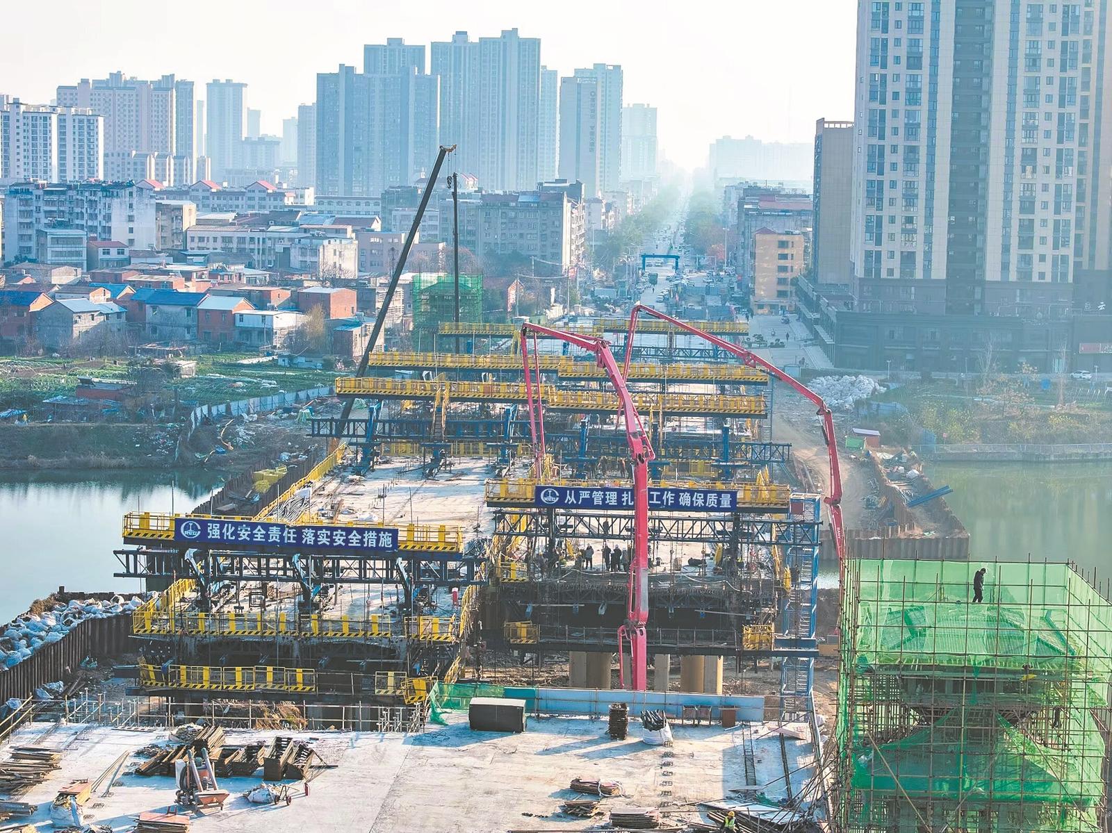 12月27日,枣阳市人民路大桥工程正加紧建设。该工程是枣阳市重点民生工程,建成后将进一步完善枣阳城区交通体系,有效缓解沙河两岸的交通压力。 通讯员李明 摄