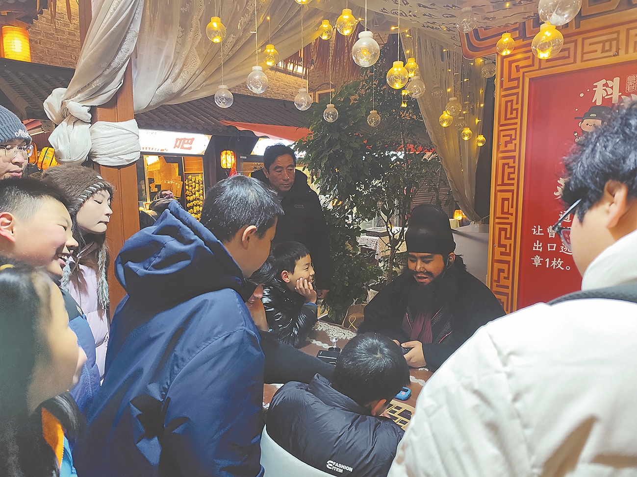 元旦假期,管家巷再次迎来了休闲打卡热。作为管家巷的专职演员,肖震博在表演之余,和同事们为游客新增了一个互动体验项目《英雄突围》:“张飞在人们心目中的形象主要是莽,我们这个互动体验项目主打一个‘反差萌’!”