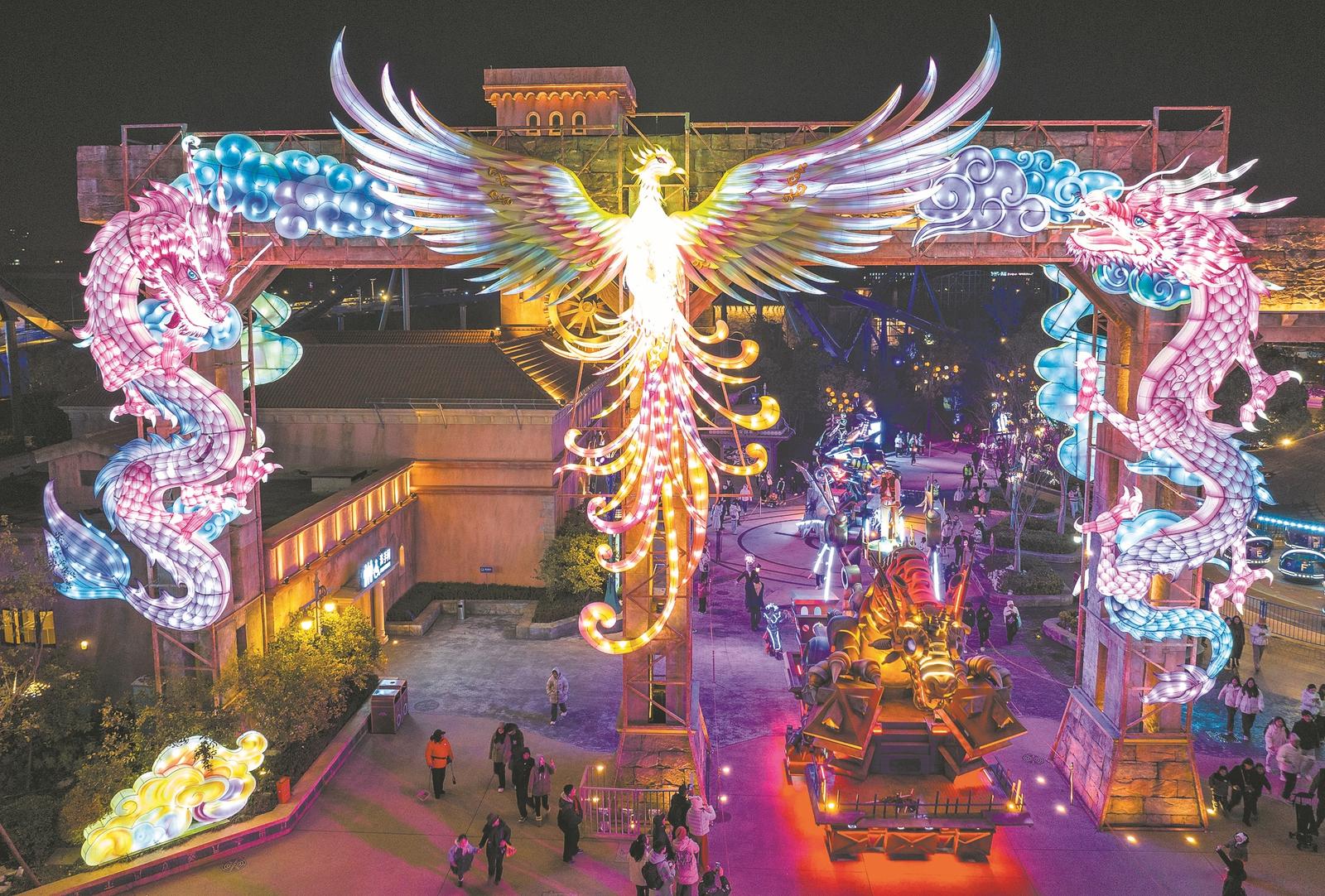 1月24日,2026年襄阳奇幻灯会在奇幻谷正式亮灯。此次灯会规模达45万平方米,由自贡非遗彩灯团队制作,呈现30多组特色彩灯。本次灯会将延续至3月,拟推出奇幻新春大庙会、奇梦城堡光影秀、八方来财奇幻大巡游、大展鸿图水下舞狮、襄阳传统非遗表演秀等演艺活动。 全媒体首席记者杨东 通讯员刘曦宁 摄