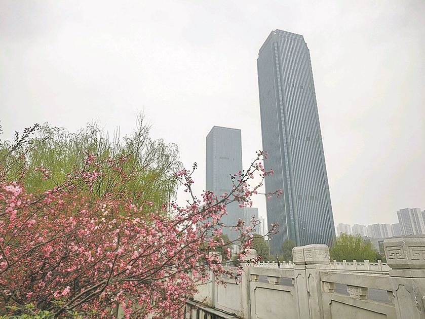 春日的东津新区,城市综合体旁樱花似雪,居民区附近玉兰绽放,产业园区周边海棠盛开……
