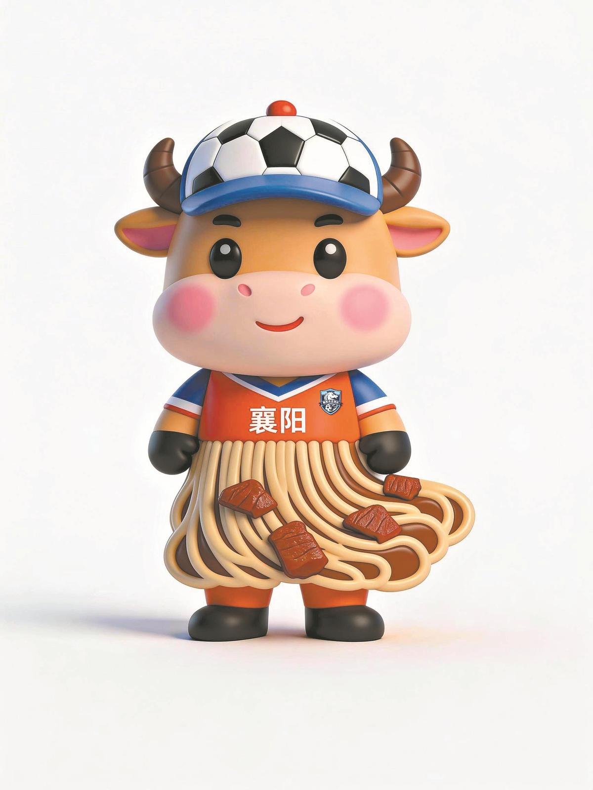 本报讯【记者彭艺唯】2026年湖北省城市足球联赛即将开赛,襄阳足球队吉祥物在万众期盼中火热出炉。4月7日,记者获悉,襄阳足球队吉祥物“牛奔奔”巧妙将襄阳特色美食牛肉面融入造型,尽显襄阳地域文化与足球运动的完美融合。