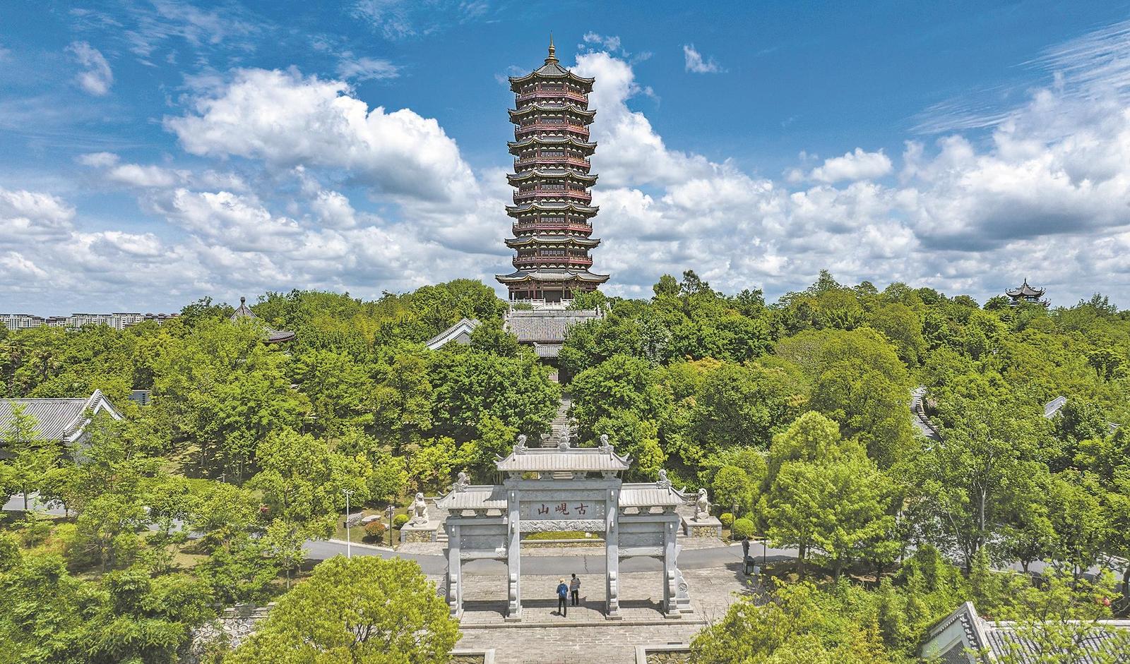 4月22日,雨后初晴,蓝天白云映衬下的岘首山美如画 记者杨东 摄