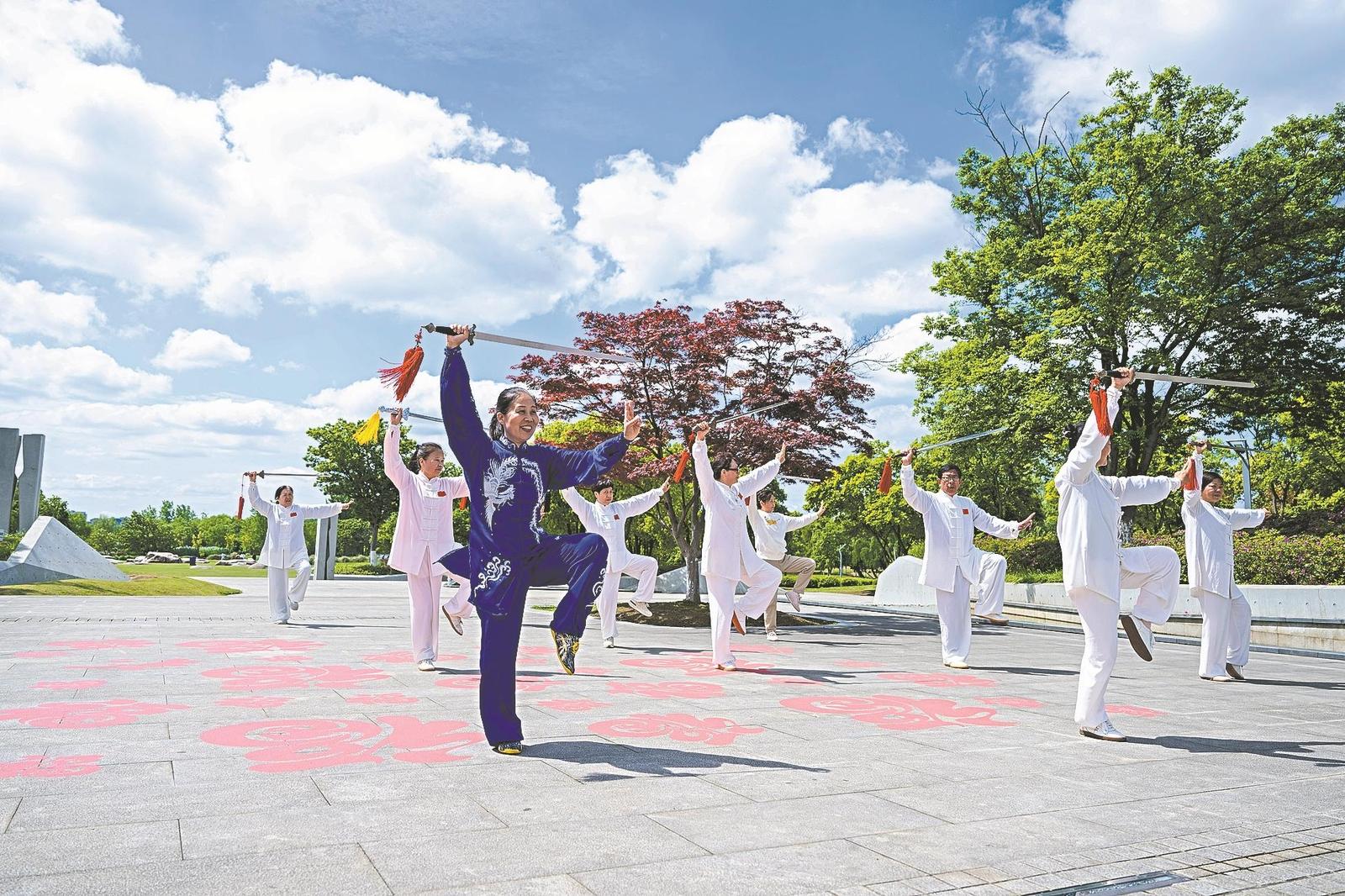 4月22日,市老年大学汉江分校的师生在樊城月亮湾公园练习太极剑,展现出新时代老年人老有所学、老有所乐、健康向上的精神风貌。